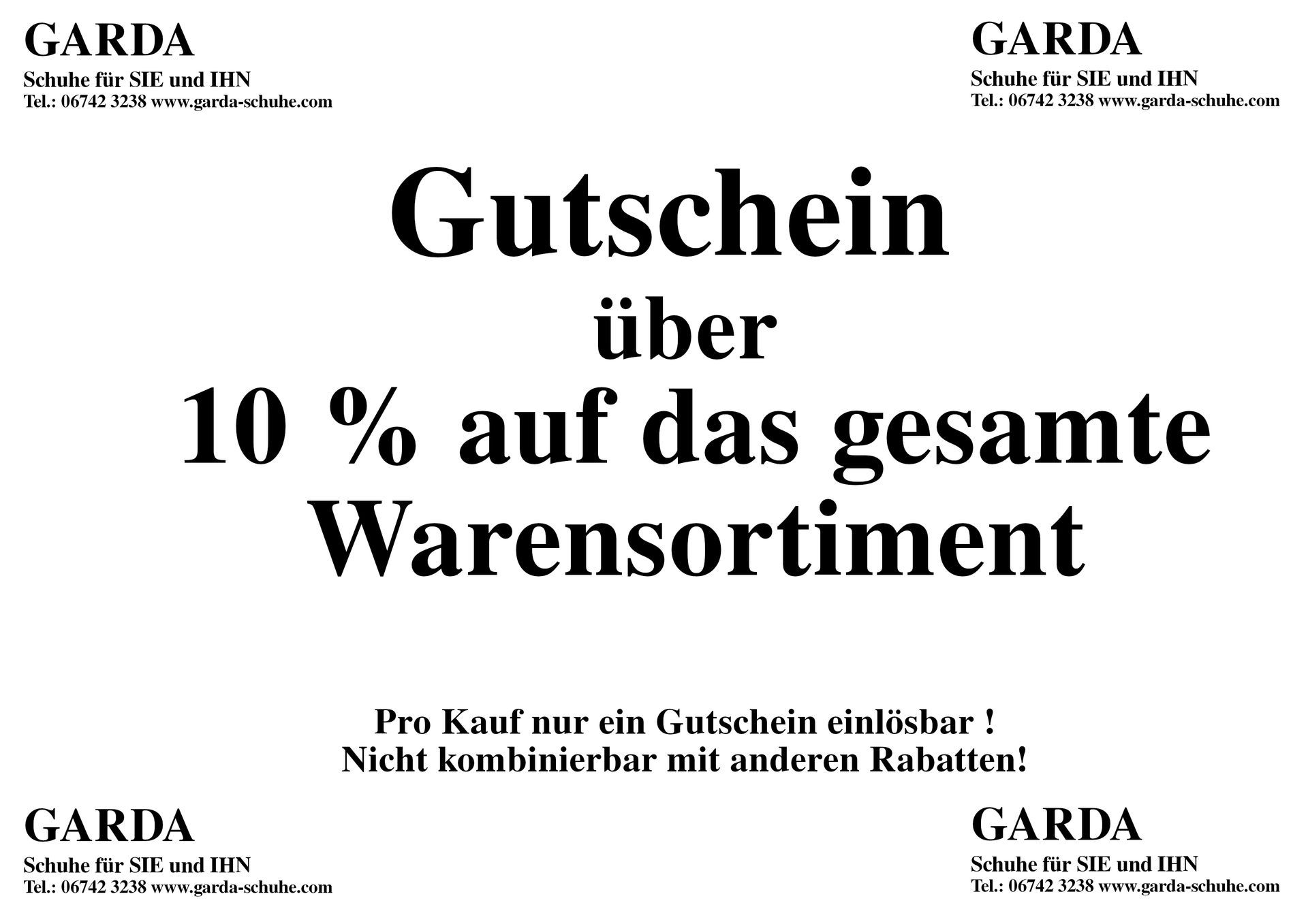 Per Email: garda-schuhe@gmx.de